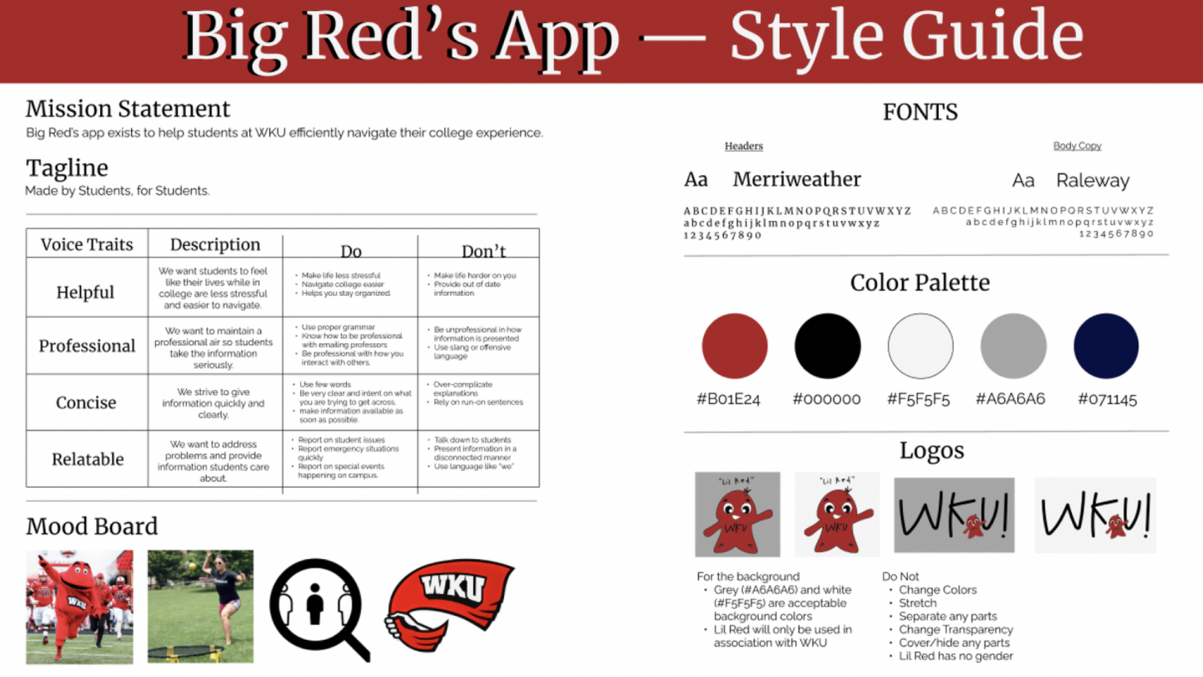 The objective was to prototype an app within the constraints found through our research and identified through our style guide. Using the existing student app as a reference, we incorporated the results from our audience interviews into our prototyped app.