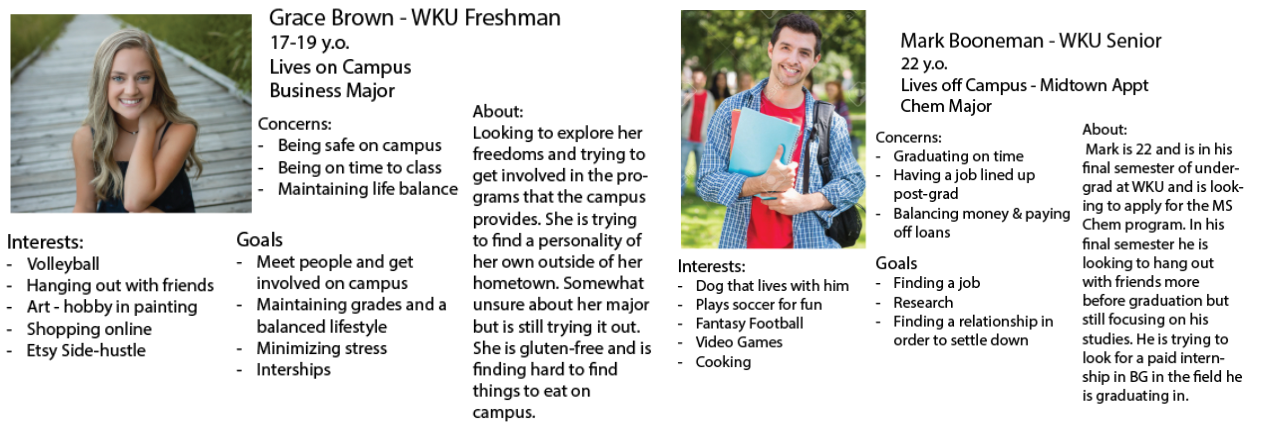 We created interview questions to help decide which elements students were looking for in our university’s app. From our interviews, we created work activity notes and user personas.